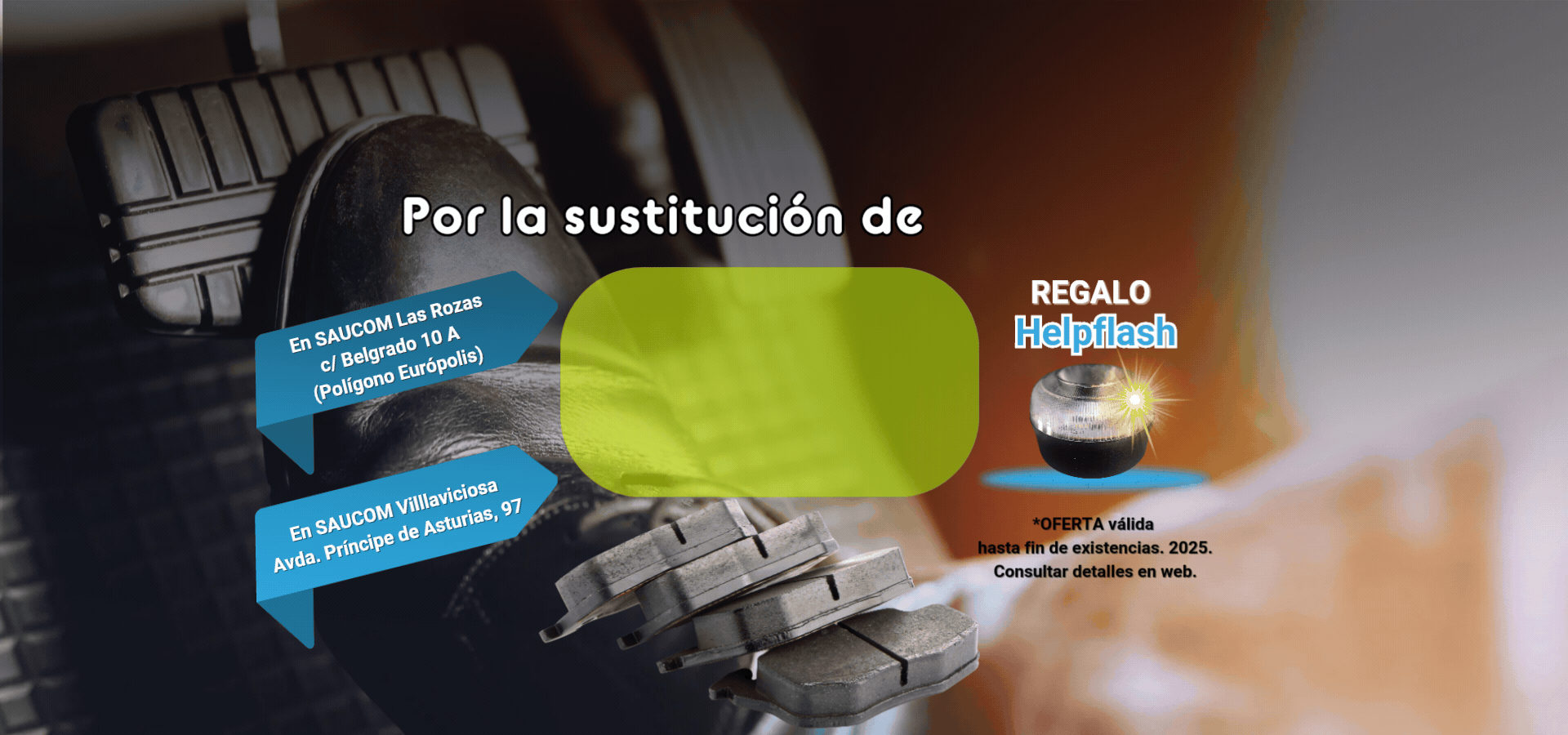 Ahora, por la sustitución de pastillas de freno, delanteras o traseras, te regalamos una Luz de Emergencia (HelpFlash).