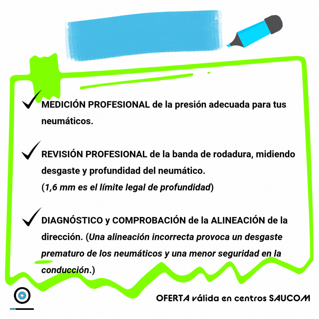 ¡Ven a nuestros centros SAUCOM y nuestro equipo de técnicos especialistas realizarán una revisión profesional del estado de tus neumáticos totalmente GRATIS!